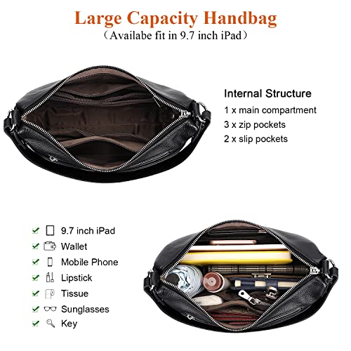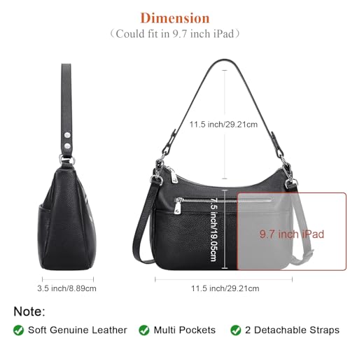 Fabric type: Genuine LeatherOrigin: ImportedClosure type: ZipperLining: PolyesterMaterial: Women's crossbody bags are made of top grade cowhide leather (genuine leather). Polyester lining. excellent golden hardware and smooth zipper.Medium Leather Purses: Dimensions: (L)11.5 x (W)3.5 x (H)7.5 inch. Not too small and not too big. Net weight: 0.61 kg/1.34 lbs. This crossbody handbag comes with 2 detachable straps. Shoulder Drop height: 11.5 inches; Crossbody drop height: 26 to 28 inches.Structure: zipper open to 1 large compartment. The interior structure has 2 slip pockets and 3 zipper pockets. The exterior structure included 1 front zipper compartment, 2 front slip pockets with magnetic closure, and 1 back zipper pocket. Multi pocket bag designed to allow you to comfortably hold your 9.7 iPad, wallet, umbrella, mobile phone, cosmetics, and other essentials.Multi pocket Design: This shoulder bag features a multi pocket design with plush leather, which is practical and fashionable. The number of pockets makes it easy to compartmentalize things and allows you to find items quickly, and everything becomes more orderly.Utility: This crossbody bag is soft and fashionable, and this purse could be as a small crossbody purse, or as a shoulder bag with a variety of storage pockets and organization features, it is a great choice for travel, work, and shopping. Perfect for everyday use. High quality materials and excellent craftsmanship ensure long-lasting durability.