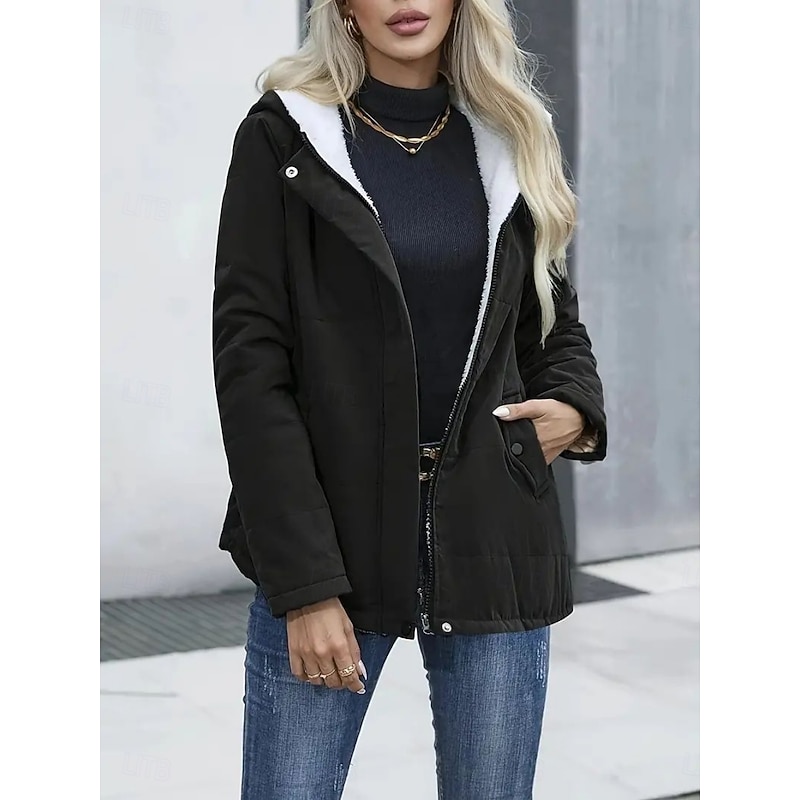 $35.99 - Women's Winter Coat Fleece Jacket Comfortable Breathable Pocket Casual Plain Vacation Street Casual Daily Wear Zipper Regular Hooded Regular Fit Long Sleeve Outerwear Black Blue Khaki Spring Fall 2025. Shop for cheap Fleece-Lined Jackets online? Buy at lightinthebox.com on sale today!