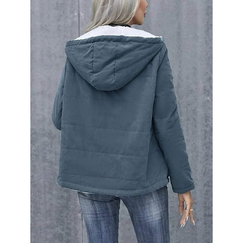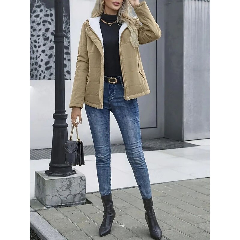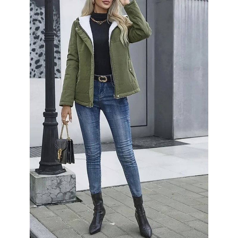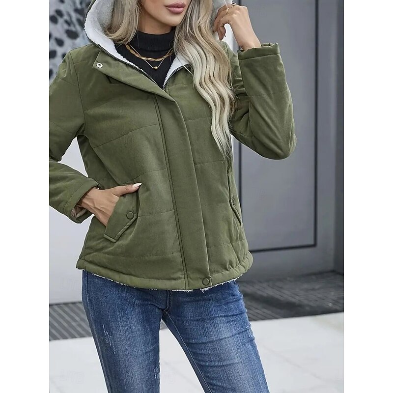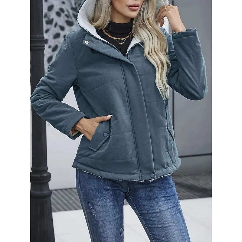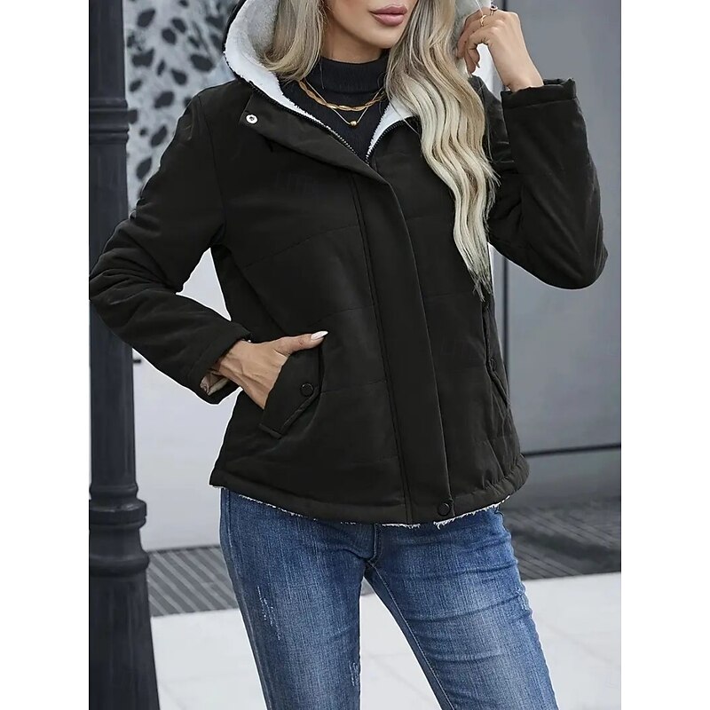 More information about Women's Winter Coat Fleece Jacket Comfortable Breathable Pocket Casual Plain Vacation Street Casual Daily Wear Zipper Regular Hooded Regular Fit Long Sleeve Outerwear Black Blue Khaki Spring Fall