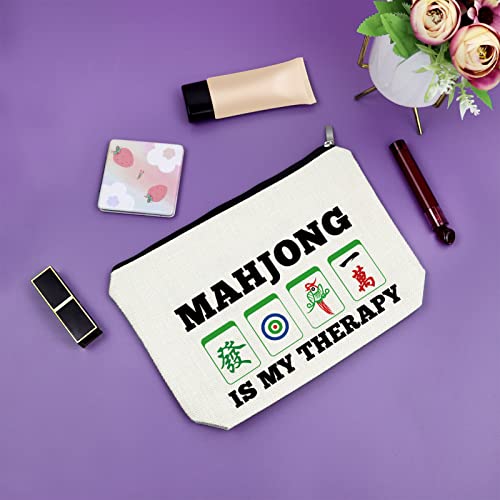 • Mahjong Themed Gifts for Women:The Mahjong makeup bag print inspirational information“MAHJONG IS MY THERAPY ”. It is a funny mahjong keepsake. It makes a great gift for grandmother, mother or mother-in-law a mahjong cosmetic bag. Ideal gift for the mahjong player, Chinese game fans and people who love playing mahjongg.