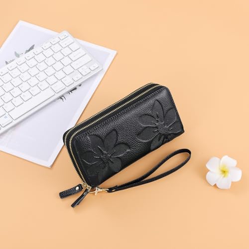 • Premium & Floral Design: The womens wallet is made of high-quality genuine leather with smooth zippers and a comfortable wristlet strap. It features a simple yet beautiful embossed flower pattern that gives it a very nice texture and style. Good looking, wear-resistant and durable