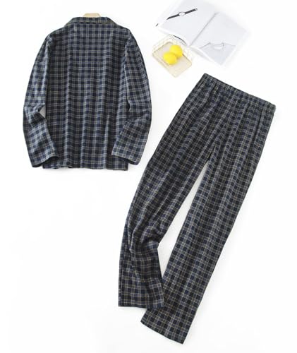 CHUNG Men Flannel Pajamas Set 100% Cotton Brushed Pjs Classic Plaid Long Sleeve Tops Pants Warm Sleepwear loungewear 4