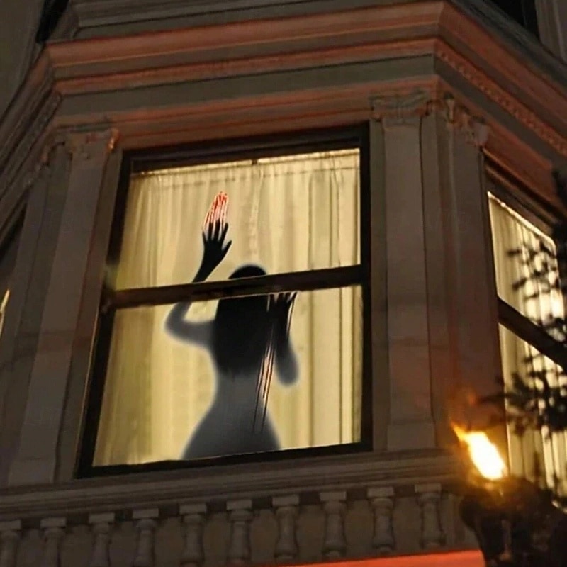 Halloween Wall Stickers - Self-Adhesive Glass Window Decorations with Ghost Hands, Female Ghost, Blood Handprints, and Footprints