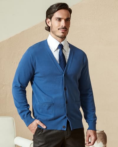 HOT ! Kallspin Men’s Pure Cotton Cardigan Sweater V-Neck Button Down Cardigan Lightweight Knitwear with Pockets