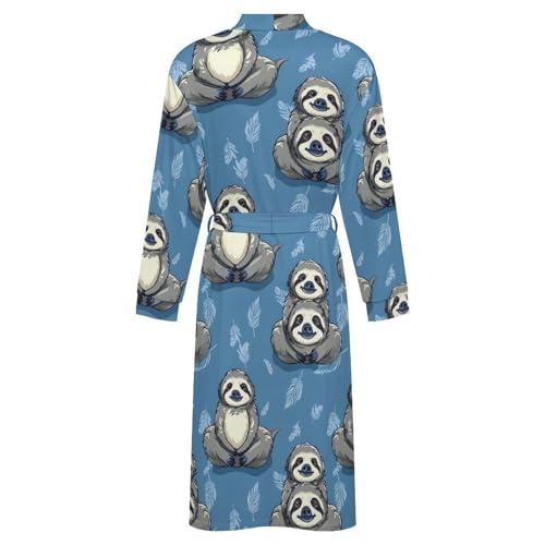 Funny Sloth Soft Robe Long Sleeve Bathrobes V Neck Sleepwear Spa Robes with Belt Men Woman 3