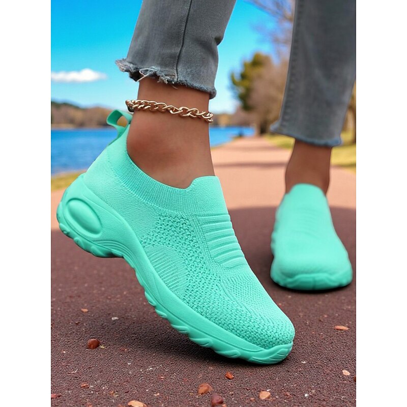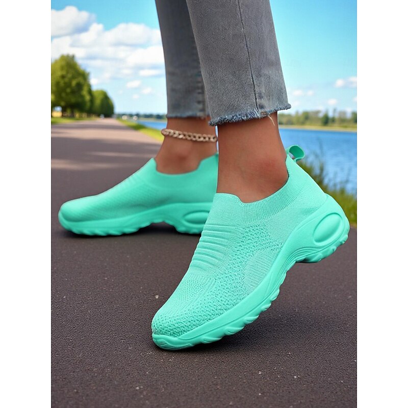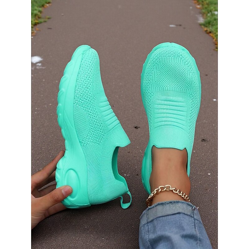 Why Choose Women's Green Flyknit Slip-On Sneakers – Breathable Lightweight Shoes for Casual Street Style, Walking, Running and Gym?