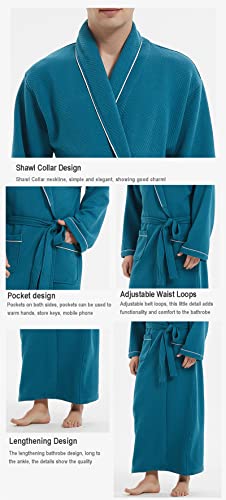 Mens Knit Waffle Robe Full Length Bathrobe Spa Robe Long Sleeves Kimono Adult Hotel Nightgown 4