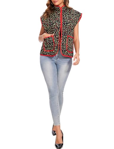 Women's Cropped Puffer Quilted Vest Cardigan Floral Printed Jacket Lightweight Open Front Short Padded Coats 5