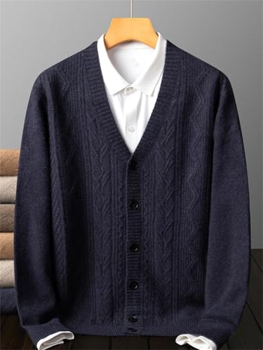 HOT ! Men's Cashmere Cardigan Thickened Casual V-Neck Solid Color Single Breasted Sweater