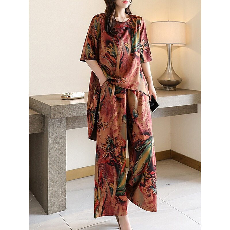 Women's Loungewear Sets Flower Fashion Casual Comfort Street Daily Date Breathable Crew Neck Short Sleeve T shirt Tee Pant Pocket Summer Spring Home Outfits