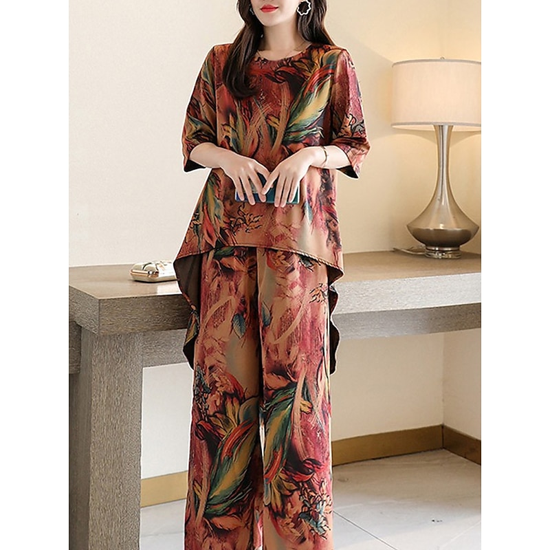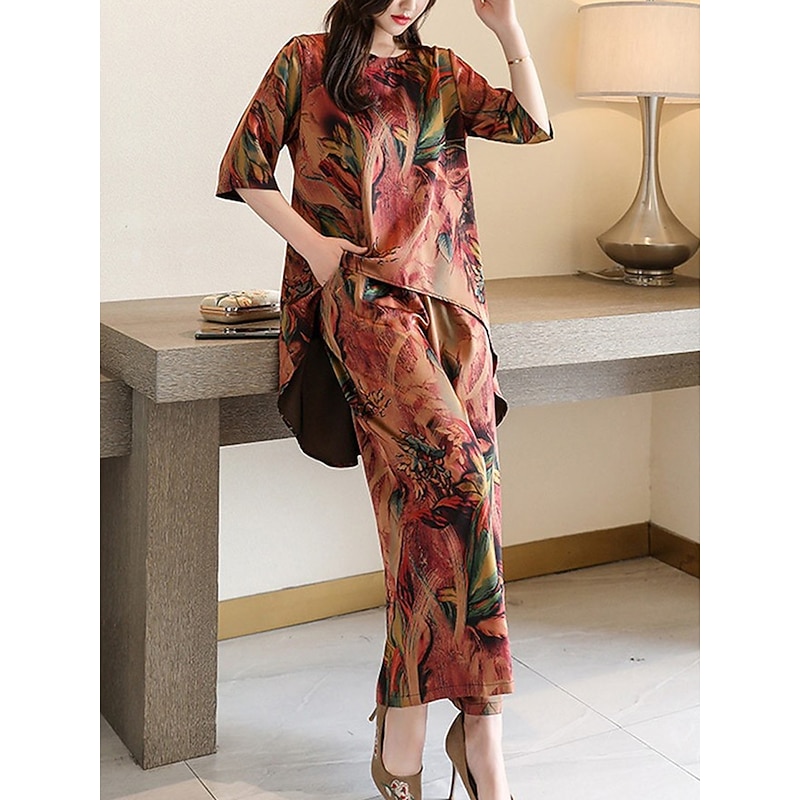 More information about Women's Loungewear Sets Flower Fashion Casual Comfort Street Daily Date Breathable Crew Neck Short Sleeve T shirt Tee Pant Pocket Summer Spring Home Outfits