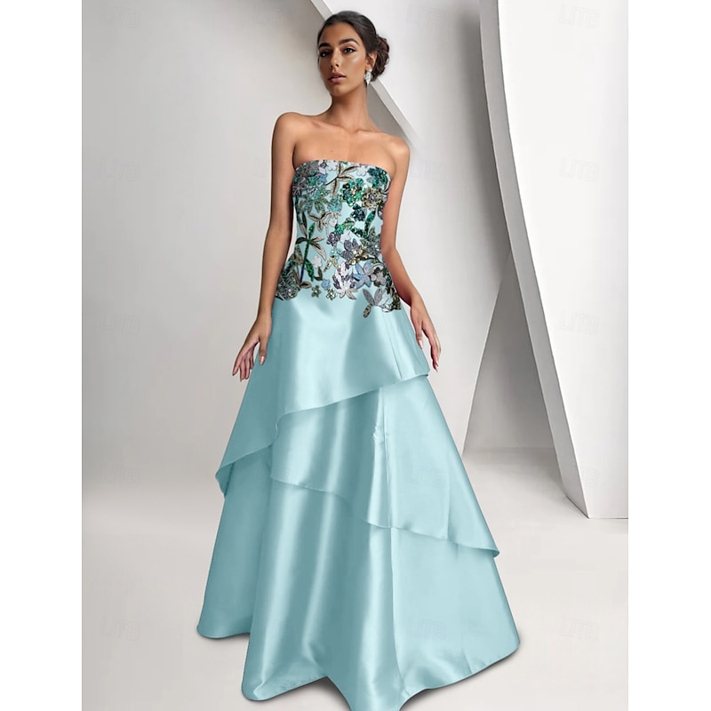More information about Beaded Gown Dropped Waist A-Line Evening Gown Asymmetrical Tiered Dress Formal Semi Formal Wedding Floor Length Sleeveless Satin