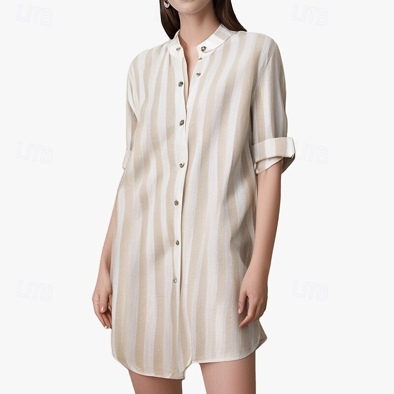 More information about Women's Mini Dress Shirt Dress Casual Dress Summer Dress Stylish Casual Vacation Daily Date Regular Fit Stripe Long Sleeve V Neck Black Pink Blue Khaki Summer Spring