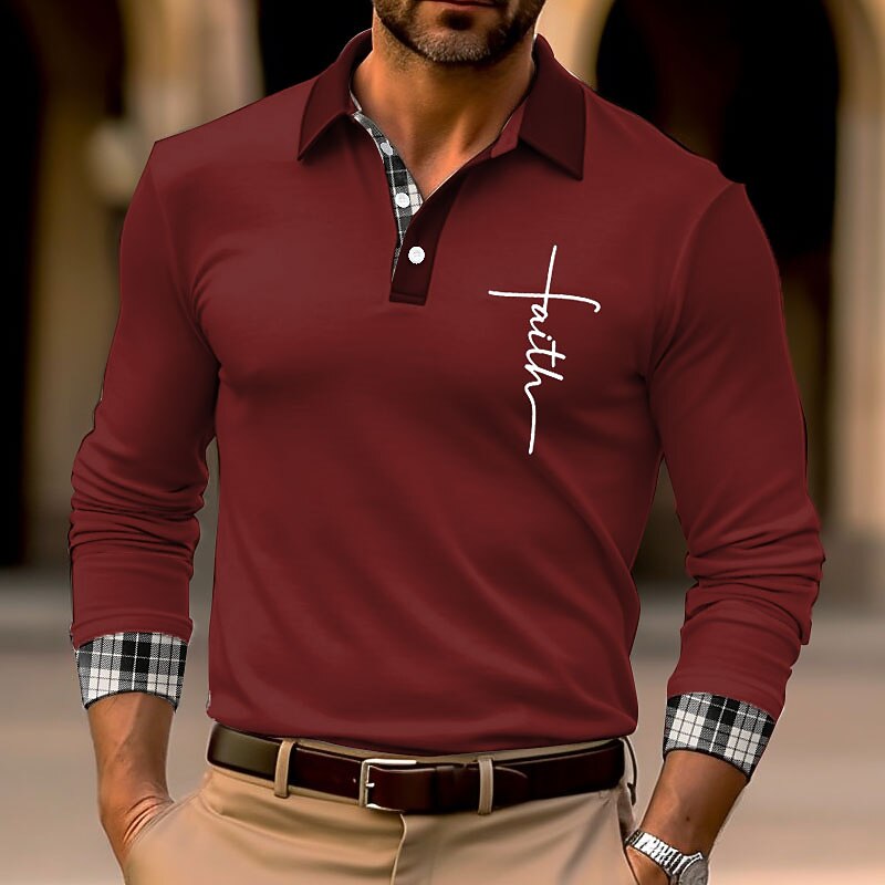 More information about Men's Faith Polo Shirts Golf Shirt Long Sleeve Polo Shirts Collared Shirts Business Casual WorkWear Formal Wear Festival Wear 3D Print Buttons Black White Wine