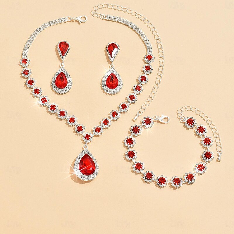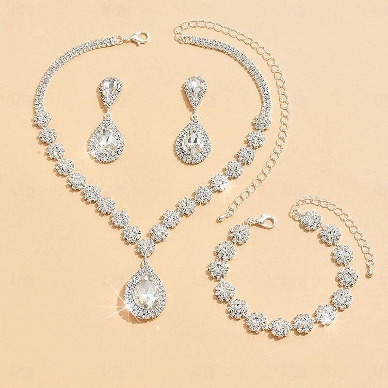 More information about Jewelry Set 4pcs Rhinestone Alloy Earrings Necklace Bracelets Women's Elegant Stylish Simple Geometrical Geometric Jewelry Set For Anniversary Wedding Guest Special Occasion