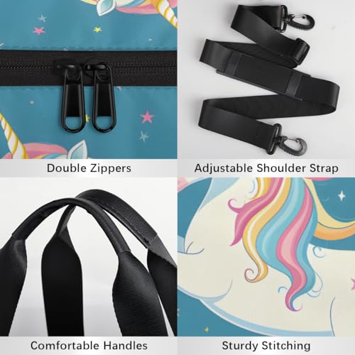 Unicorn Rainbows Round Barrel Sports Fitness Bag, Blue Pink White Travel Luggage Bag, Reusable Handbag, Suitable For Men and Women