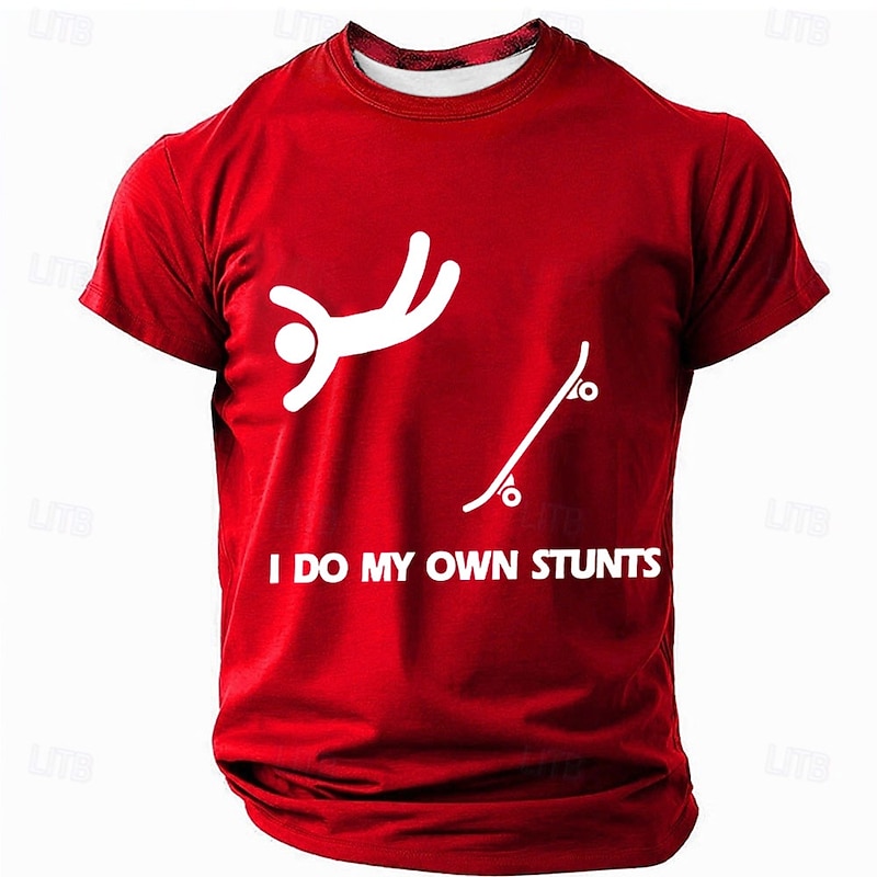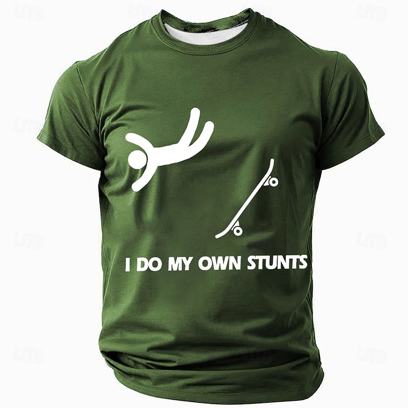 HOT ! Men's Short Sleeve Graphic Tee - "I Do My Own Stunts" Funny Skateboard Humor