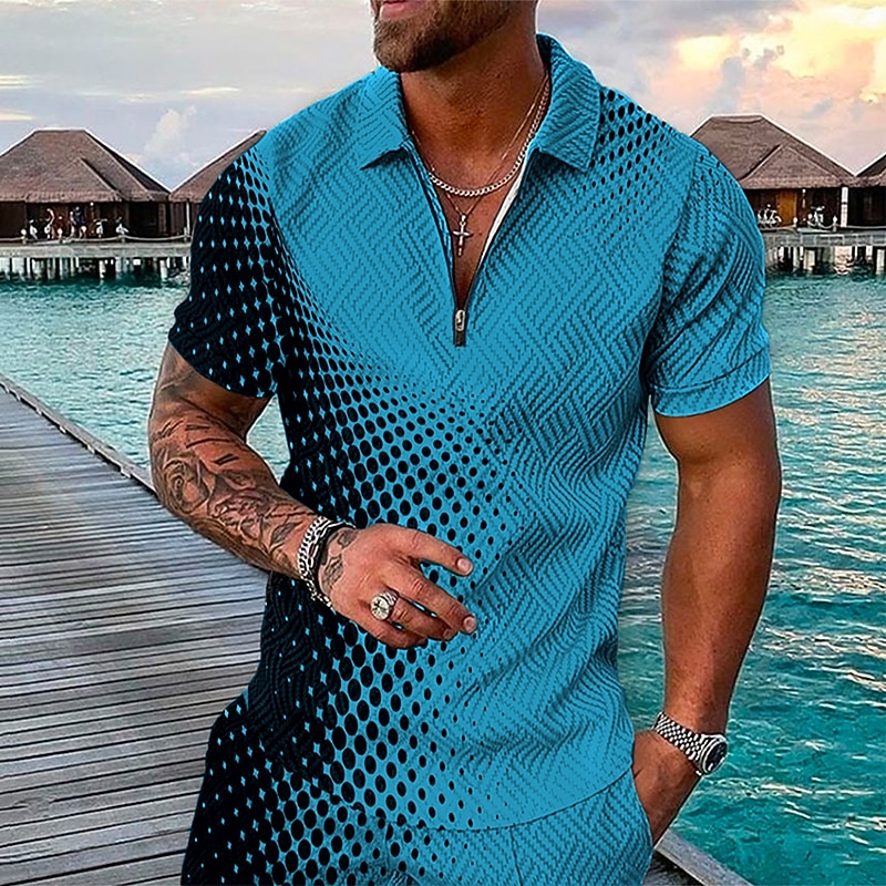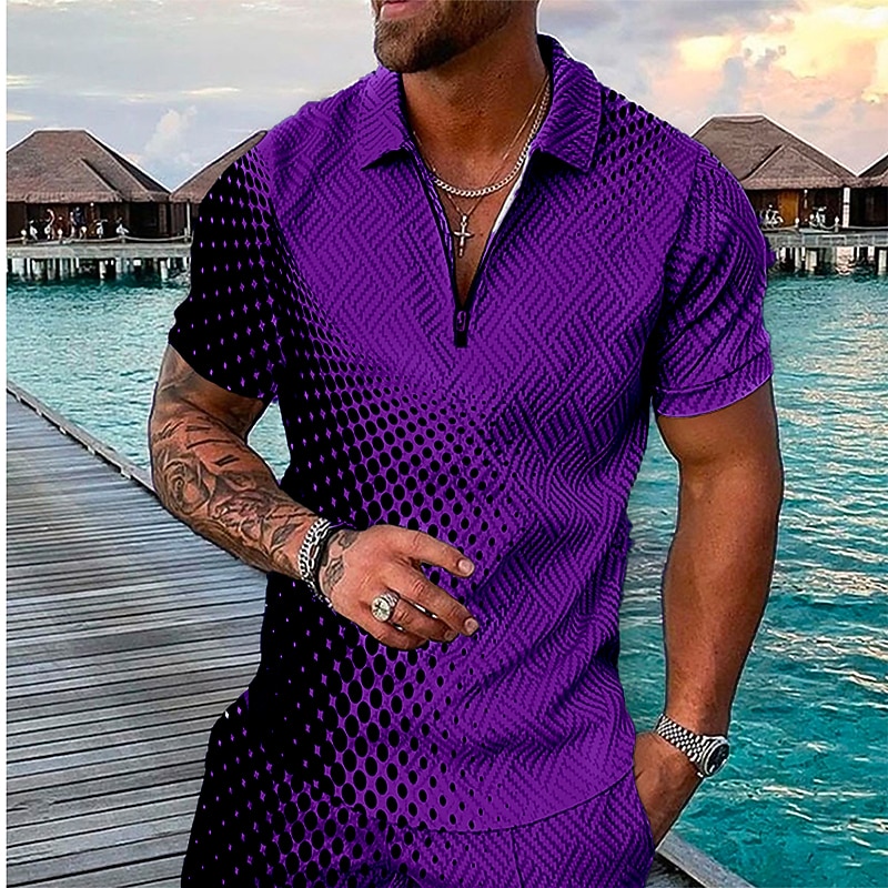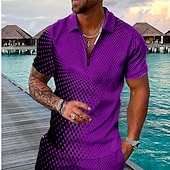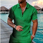 HOT ! Men's Geometric Hawaiian Polo Shirts Golf Shirt Short Sleeve Polo Shirts Collared Shirts Casual Beach Wear Vacation Wear Party Outfits 3D Print Quarter Zip Polo Black / Gray Pink Red