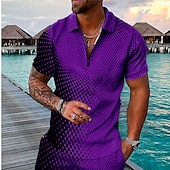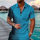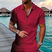 More information about Men's Geometric Hawaiian Polo Shirts Golf Shirt Short Sleeve Polo Shirts Collared Shirts Casual Beach Wear Vacation Wear Party Outfits 3D Print Quarter Zip Polo Black / Gray Pink Red