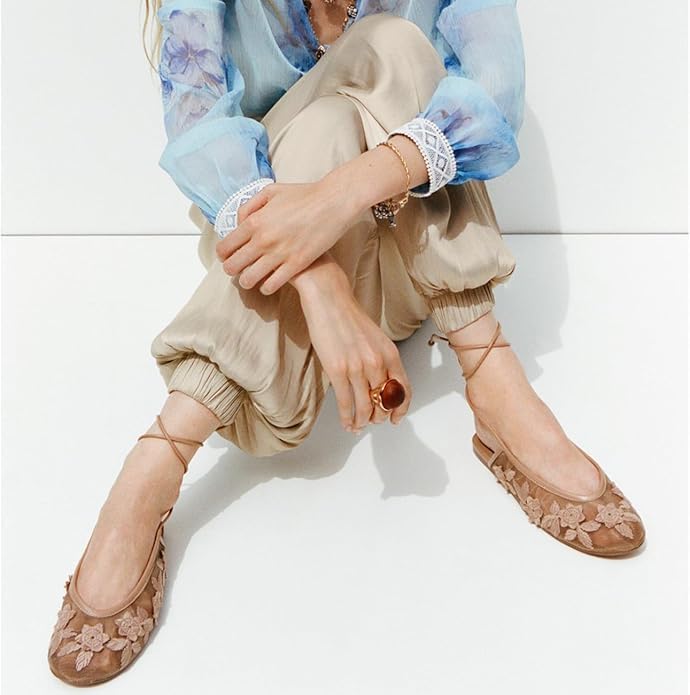 Lace Up Mesh Ballet Flat for Women, pleasant Breathable, Round Toe sleek and Popular Style Shoes for Formal Occasions Casual Office Date Night