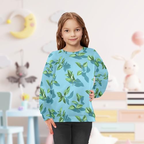 JUNZAN Art Basil Blue Big Girls Sweatshirt Hoodie Crewneck Sweatshirt With Hoodie Athletic 4T