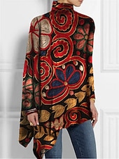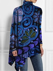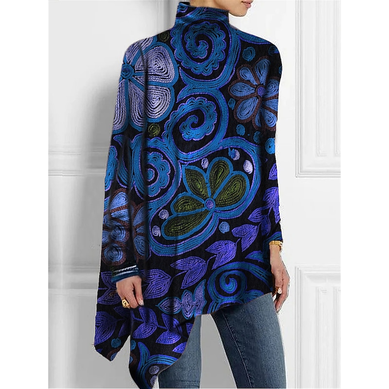 More information about Women's T Shirt Fashion Floral Print Asymmetric Hem Long Sleeve Long Tops High Neck Casual Holiday Red Blue Green Spring & Fall