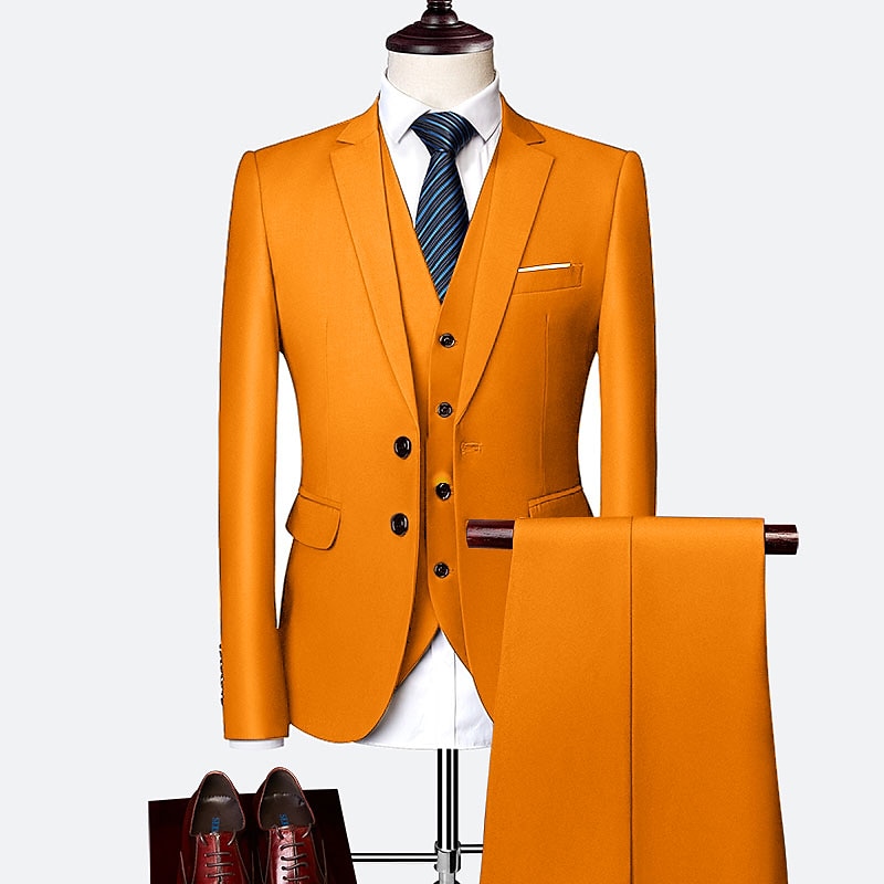HOT ! Men's Wedding Homecoming Groomsmen Suits Business WorkWear Yellow Sky Blue Solid Colored Standard Fit 3 Piece Single Breasted Two-buttons