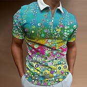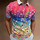 Featuring a vibrant 3D floral print, this polo shirt offers a unique quarter-zip closure that adds a contemporary twist to the traditional collared shirt. The colorful circular patterns create a lively and artistic appearance, ideal for those looking to make a bold statement.