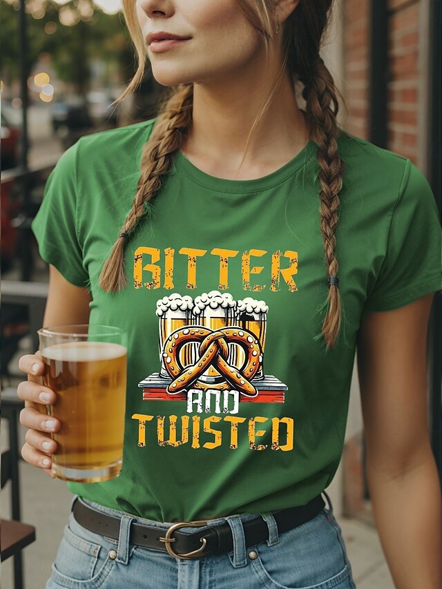 More information about Oktoberfest Women's T Shirt Graphic Letter Vintage Stylish Classic Short Sleeve Crew Neck Regular Tops Daily Weekend Print Black Blue Purple Green Summer Spring