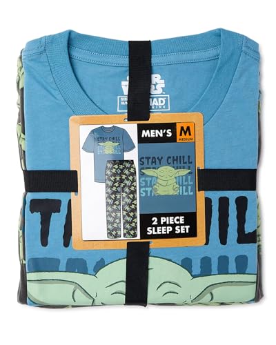 • great GIFT FOR ANY OCCASION / SIZING - Choose the ideal size for you: Small (fits waist 28-30"), Medium (32-34"), Large (36-38"), XL (40-42"), or 2XL (44-48"). Elevate your sleepwear game with the Star Wars The Mandalorian Men's Baby Yoda The Child Grogu Stay Chill 2 PC Pajama Set – because even in a galaxy of dreams, comfort reigns supreme
