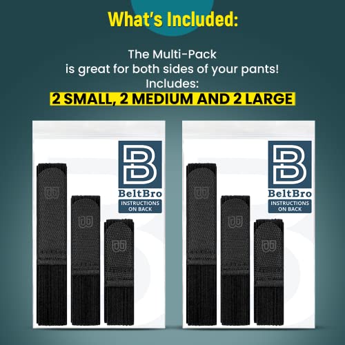 Fabric type: 33% Elastic, 34% Nylon, and 33% PolyesterCare instructions: Hand Wash OnlyOrigin: ImportedMULTIPACK - FOR BOTH SIDES OF YOUR PANTS — This multi-pack is designed especially for both sides of your pants. It includes 2 small, 2 medium, and 2 large BeltBro elastic belts. It's snug, stretchy, and elastic that adjusts to fit all sizes!MADE OF HIGH-QUALITY MATERIAL — BeltBro invisible belt is made of 33% Elastic, 34% Nylon, and 33% Polyester, making it reliable and long-lasting. This elastic belt offers super strong holding power and longer durability for frequent opening and closing.EXPERIENCE ULTIMATE COMFORT ALL DAY LONG — Belts dig into your stomach, causing pain and annoyance. With BeltBro, your pants feel secure but you won’t even feel like you’re wearing a belt. The BeltBro allows you to breathe easy and stay comfortable. It's the perfect way to secure your pants without an uncomfortable belt pressing against your stomach.MADE TO LAST — The BeltBro is made of a silky elastic fiber band with nylon and polyester, integrated into an industrial strength design. It's a far superior, fashionable, and more comfortable way to secure two belt loops together evenly and securely.LIGHTWEIGHT AND EASY TO TAKE ON AND OFF — Weighing just 1oz, the BeltBro secures on and off in just seconds. Hate taking off your belt at the airport? No problem! Wear the BeltBro through the airport without any hassle. The 1-inch belt BeltBro is made to fit any common womens pants and shorts.BRING NEW LIFE TO YOUR FAVORITE CLOTHING — Recently lost weight? You don’t have to buy a whole new wardrobe. Use the BeltBro to bring new life to your pants and enjoy wearing your favorite clothing again!