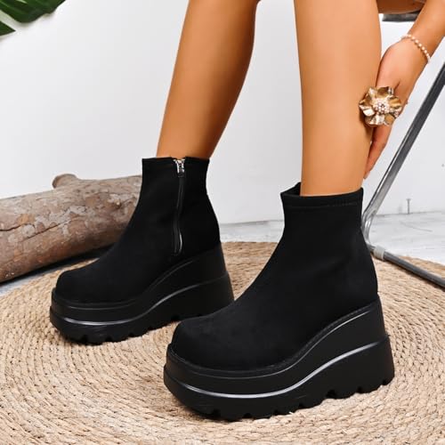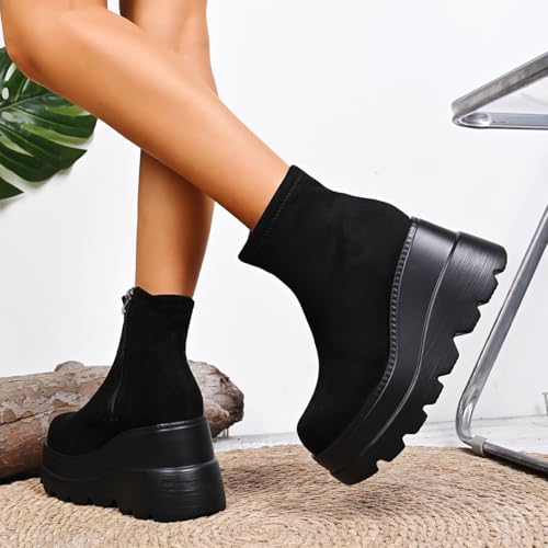 Women's Chelsea Boots Fashion Platform High Heel Ankle Booties Anti-Slip Outsole Platform Chunky Wedge Boots lady dress jeans Winter Fall boots 6
