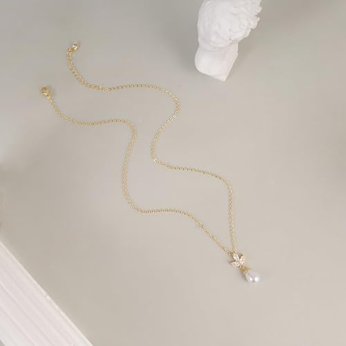 HOT ! Pearl Necklaces for Women Trendy,14k Gold Plated Pearl Pendant Necklace Dainty Wedding Necklace Small Cute Gold Choker Necklace for Women Non Tarnish Gold Prom Jewelry Fashion Bridesmaids Gifts
