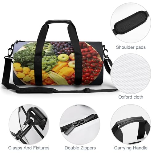 HOT ! Rainbow Vegetable And Fruit Gym Bag for Men Women, Sturdy Oxford Cloth Travel Bags with Removable Shoulder Strap, Waterproof Duffel Bag for Fitness, Travel, Yoga