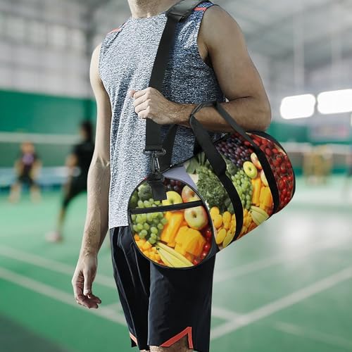 Premium & long-lasting: Crafted from high-density oxford fabric, this gym duffel bag offers exceptional water resistance, anti-scratch, and stain resistance, ensuring long-lasting performance for all your active adventures.Large Size: Measuring 17.7x 9x 9(L x W x H), the gym bags for men, ideal for travel. The main compartment can hold your gym clothes, towels, toiletries, etc. The side pockets can hold personal items, separate wet and dry areasComfortable & Versatile Carry: Experience effortless transportation with the thickly padded, detachable & adjustable shoulder strap and robust dual carry handles. Switch between shoulder carry or hand carry to suit any journey.Practical Yet Elegant: Rainbow Vegetable And Fruit duffel bag is waterproof on the outside and breathable on the inside. You don't have to worry about losing your belongings even if you carry this sports bag on rainy days. The brightly colored print on the outside makes it easier to identify.Your Ultimate Activity Companion: Perfectly designed for gym, swimming, yoga, weekend trips, travel, and sports. One bag seamlessly transitions from the gym to the pool to the airport. Stop juggling multiple bags!