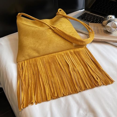 Tassels Suede Shoulder Bags for Women Retro Crossbody Bag Winter Slouchy Bucket Purses Handbag Fall 2