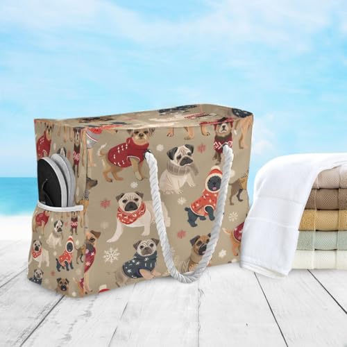 Large Beach Bags Totes Canvas Tote Shoulder Bag Dogs Clothes Water Resistant Bags for Gym Travel Daily 4