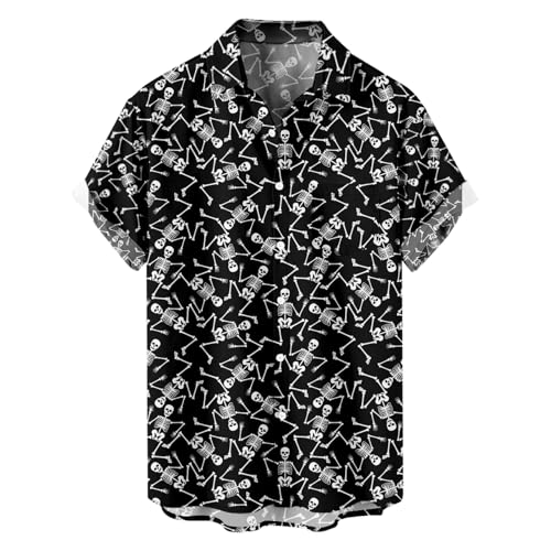 HOT ! Men's Hawaiian Shirt Skeleton Shirt Casual Button-Down Shirts Short Sleeve Beach Shirt with Pockets