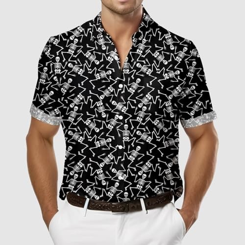 Men's Hawaiian Shirt Skeleton Shirt Casual Button-Down Shirts Short Sleeve Beach Shirt with Pockets 7
