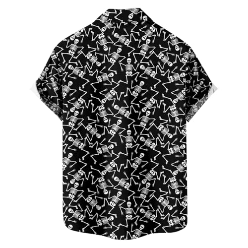 Men's Hawaiian Shirt Skeleton Shirt Casual Button-Down Shirts Short Sleeve Beach Shirt with Pockets
