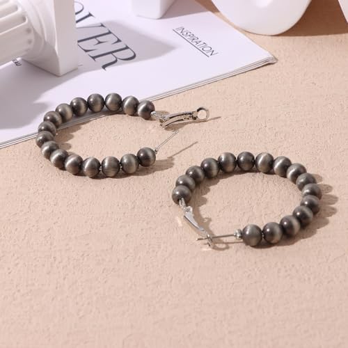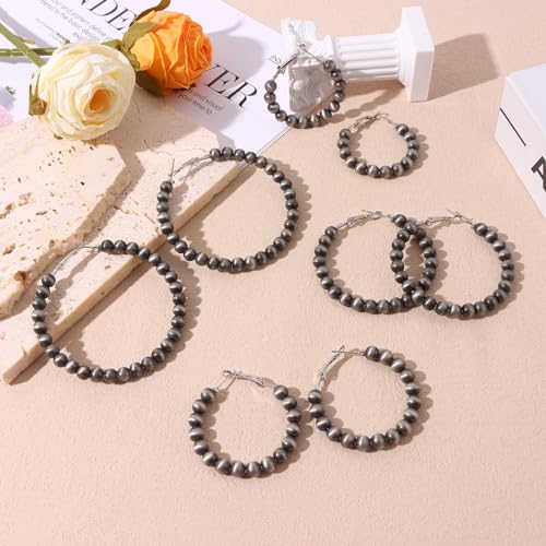 • Navajo Pearl Hoop Earrings --Packaging included 4pairs different size navajo pearl earring, classic retro,you can choose size to wear according to your preference. It is suitable for year-round wear and highlights its charm. The navajo pearl earrings is deeply loved by western cowboy women.