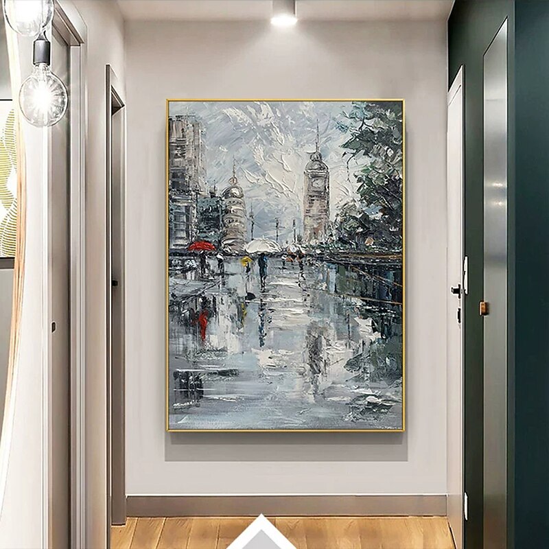 Mintura Handmade City Landscape Oil Painting On Canvas Wall Art Decoration Modern Abstract Picture For Home Decor Rolled Frameless Unstretched Painting 7