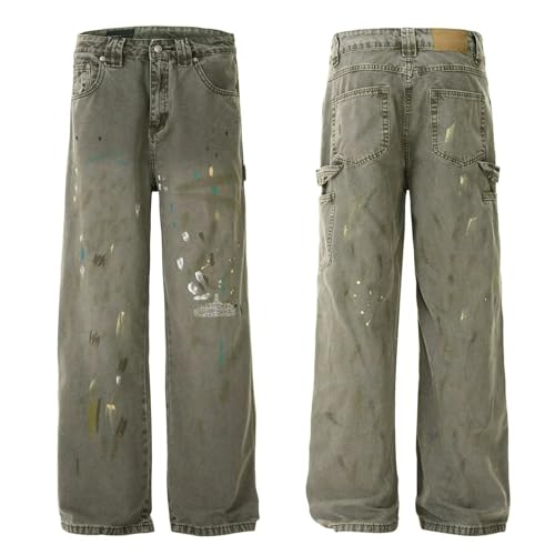 HOT ! Jeans Pants Trouser Denim Retro Street Trendy Painting Spray Loose Straight Leg for Men