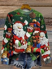 More information about Women's Sweater Pullover Daily Casual Graphic Christmas Tree Santa Claus Ribbed Crew Neck Knitted Print Long Sleeve Regular Tops Knit Outdoor Weekend Green Fall Winter