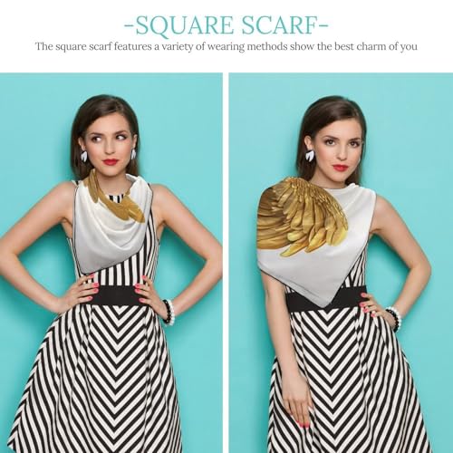 White Angel Wings Women Hair Scarf Square Silk Like Head Scarves Handkerchief Satin Neck Scarf 5