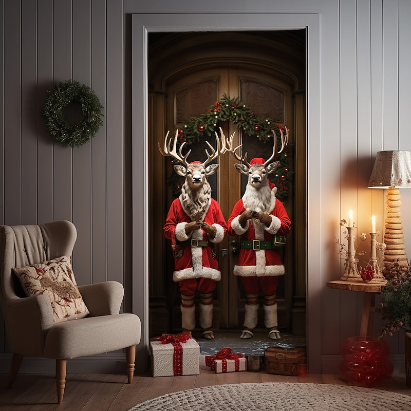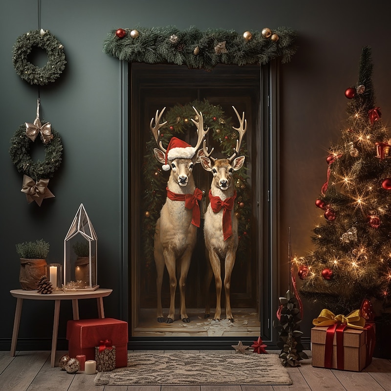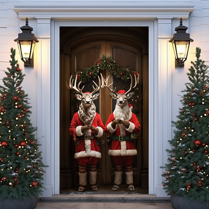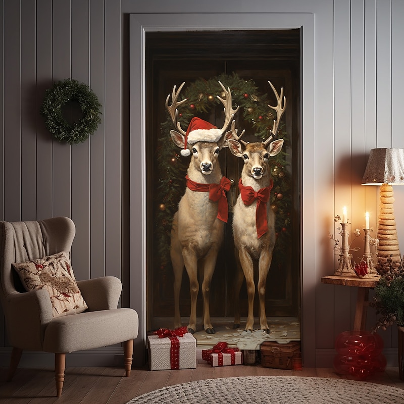 HOT ! Christmas Door Decorations Reindeers Door Covers Door Tapestry Door Curtain Decoration Xmas Backdrop Door Banner for Front Door Holiday Party Decor Supplies