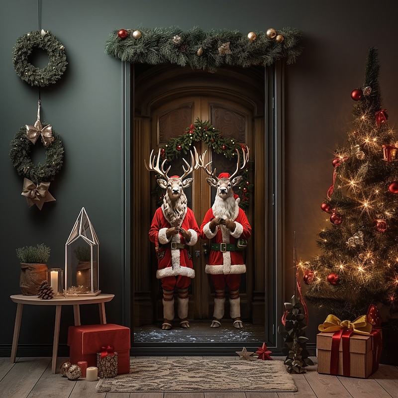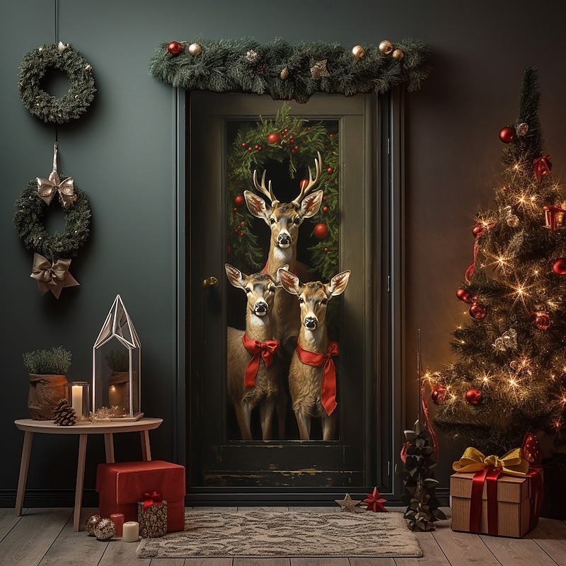 Christmas Door Decorations Reindeers Door Covers Door Tapestry Door Curtain Decoration Xmas Backdrop Door Banner for Front Door Holiday Party Decor Supplies 24
