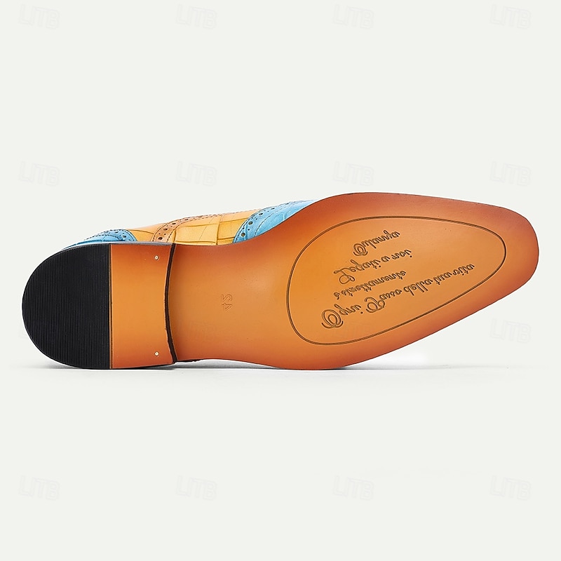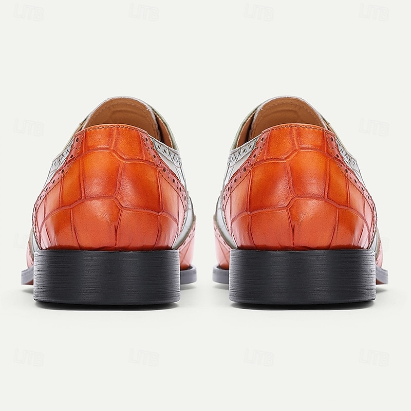 More information about Men's Green and Orange Wingtip Oxford Shoes – Premium Cowhide Leather, Crocodile Embossed Pattern, Brogue Detailing, Elegant Formal Footwear for Weddings and Business Events