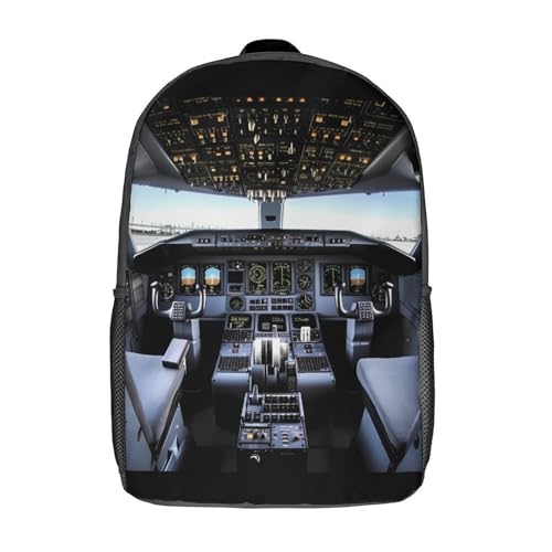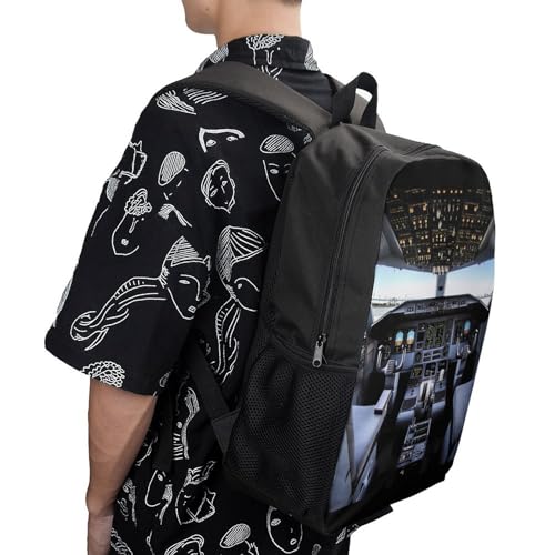 【Premium 600D Polyester Material】Our Airplane Cockpit backpack are made from lightweight, scratch-resistant 600D polyester fabric. With water-repellent and splash-proof protection, an easy-to-clean surface, and a hand-washable design, they're guaranteed to last.【Fits 15.6 Inch Laptop Bag】Spacious main compartment securely holds laptops up to 15.6 inches (16.9x12.6x5.5). Features 1 large pockets for organized storage of travel accessories, clothes, and daily essentials.【Ergonomic & Breathable Comfort】Carry on backpack, adjustable shoulder straps and multi-panel breathable mesh back padding maximize airflow, dissipate heat, and reduce shoulder stress during extended wear, ensuring superior back support.【sleek Unisex Design & Organization】Combines a cute printed pattern with a vintage unisex style. Smooth zippers and ample internal organization make this daypack perfect for work, travel, and everyday casual use.【Versatile Travel & Hiking Backpack】Ideal multi-functional backpack for hiking, camping, air travel, business trips, shopping, and overnight stays. Durable construction handles outdoor sports and daily commuting effortlessly.