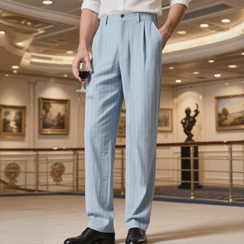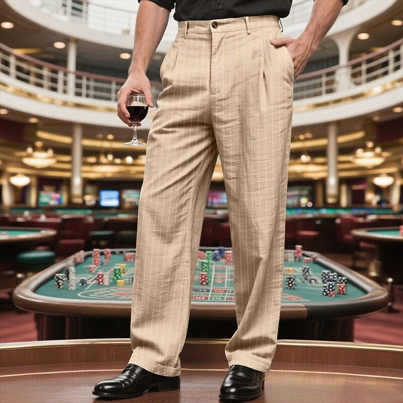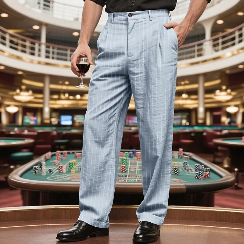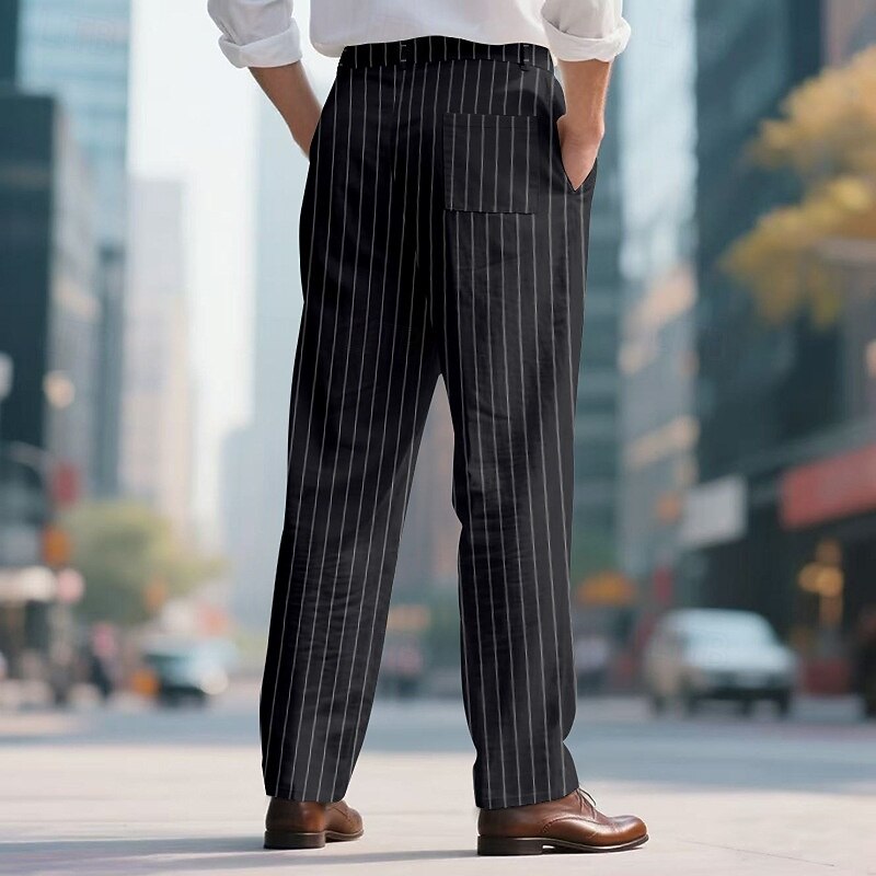 Men's Dress Pants Trousers Chinos Pocket Buttons Striped Comfort Formal Party Work Fashion Classic Style Black White Micro-elastic 24